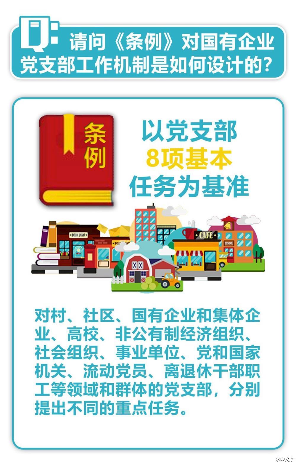 (三)國(guó)有企業(yè)和集體企業(yè)中的黨支部,保證監(jiān)督黨和國(guó)家方針政策的貫徹執(zhí)行,圍繞企業(yè)生產(chǎn)經(jīng)營(yíng)開(kāi)展工作,按規(guī)定參與企業(yè)重大問(wèn)題的決策,服務(wù)改革發(fā)展、凝聚職工群眾、建設(shè)企業(yè)文化,創(chuàng)造一流業(yè)績(jī)。