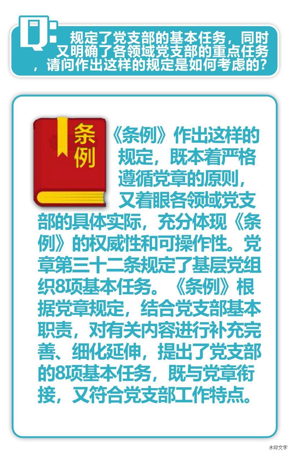 第二條 黨支部是黨的基礎(chǔ)組織,是黨組織開(kāi)展工作的基本單元,是黨在社會(huì)基層組織中的戰(zhàn)斗堡壘,是黨的全部工作和戰(zhàn)斗力的基礎(chǔ),擔(dān)負(fù)直接教育黨員、管理黨員、監(jiān)督黨員和組織群眾、宣傳群眾、凝聚群眾、服務(wù)群眾的職責(zé)。