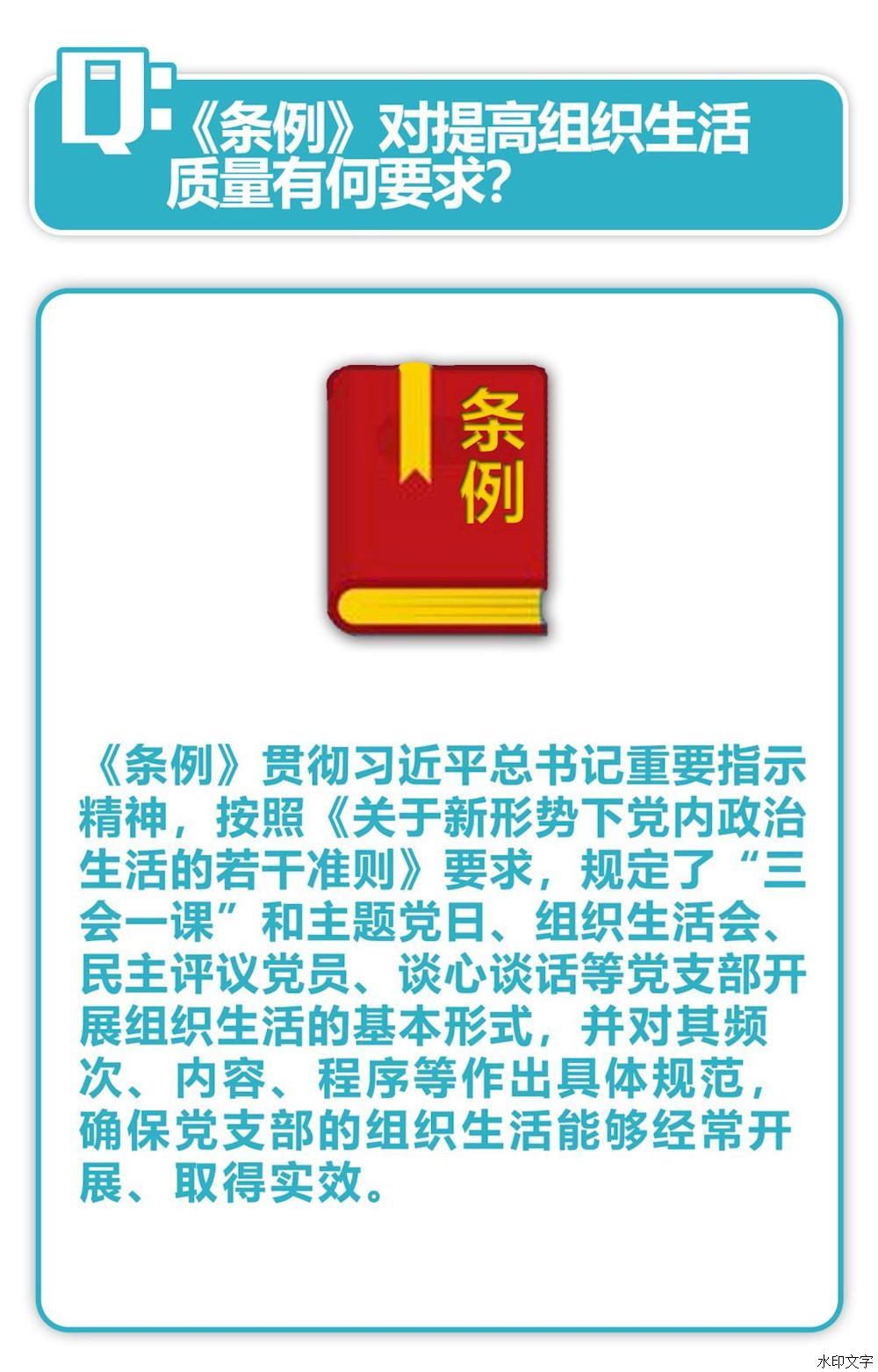 第十七條 黨支部每年至少召開(kāi)1次組織生活會(huì),一般安排在第四季度,也可以根據(jù)工作需要隨時(shí)召開(kāi)。組織生活會(huì)一般以黨支部黨員大會(huì)、黨支部委員會(huì)會(huì)議或者黨小組會(huì)形式召開(kāi)。