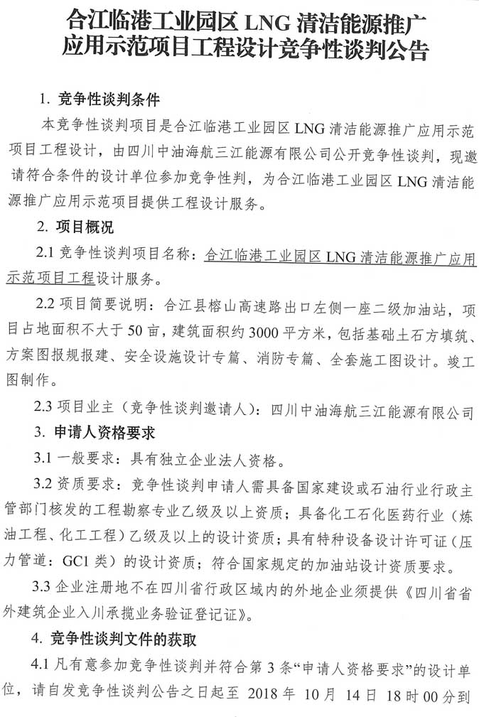 合江臨港工業(yè)園區(qū)LNG清潔能源推廣應(yīng)用示范項目工程設(shè)計競爭性談判公告.docx