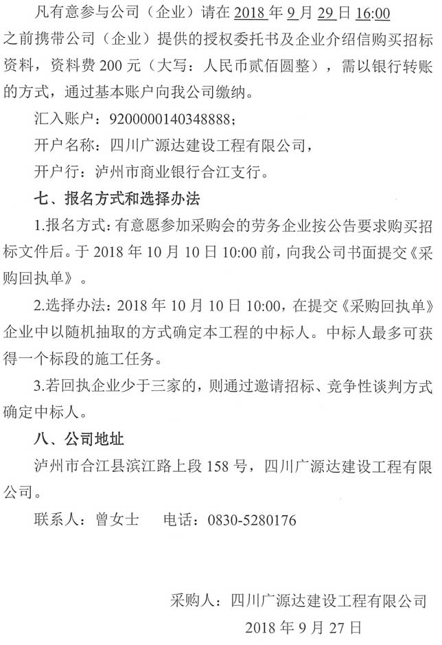 采購(gòu)公告:四川廣源達(dá)建設(shè)工程有限公司阜陽文化產(chǎn)業(yè)綜合體(一期)裝修附屬工程勞務(wù)分包企業(yè)采購(gòu)公告(第二次)