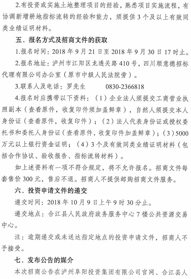 招商公告:瀘州阜陽(yáng)投資集團(tuán)有限公司耕地占補(bǔ)平衡項(xiàng)目招商公告
