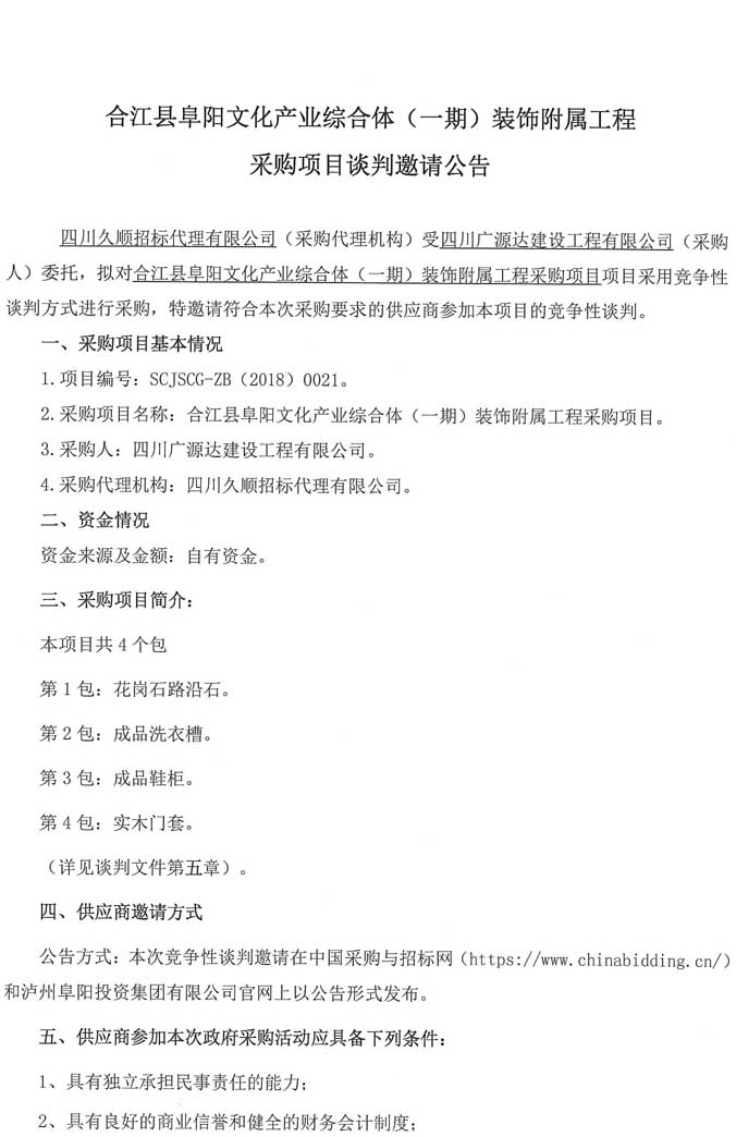 合江縣阜陽文化產(chǎn)業(yè)綜合體(一期)裝飾附屬工程采購(gòu)項(xiàng)目談判邀請(qǐng)公告.doc