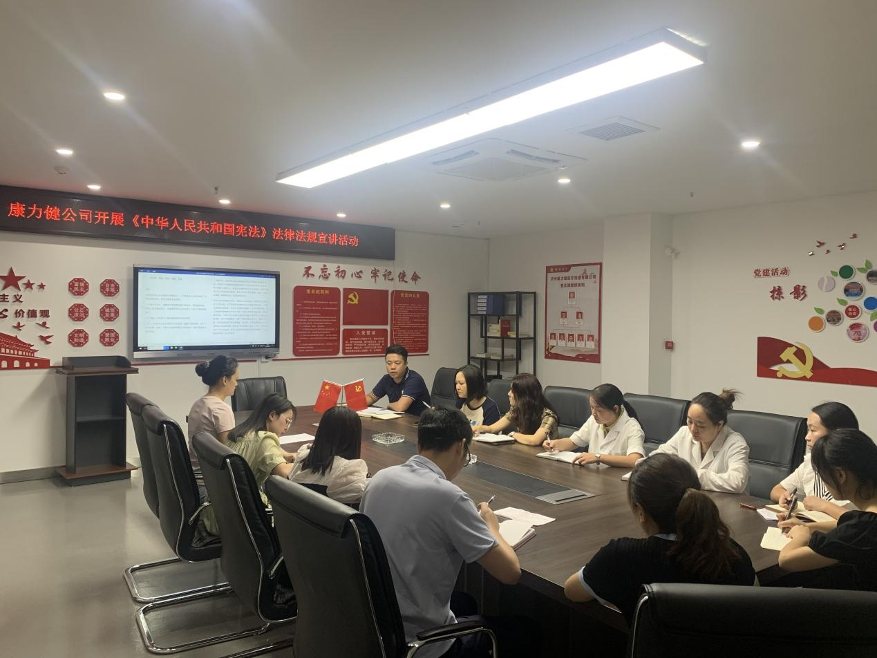 2022 年 8 月 23 日 , 康力健公司組織開展 《 中 華 人 民 共 和國憲法》 法律法規(guī)宣講活動, 由康力健綜合部部長賀佳領學。