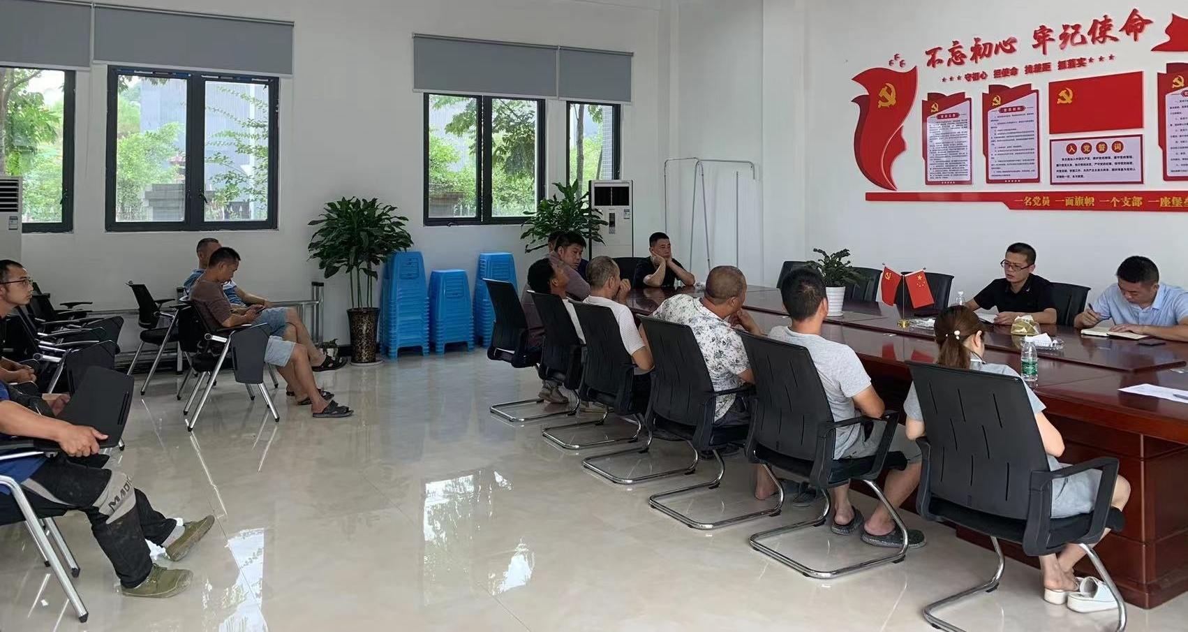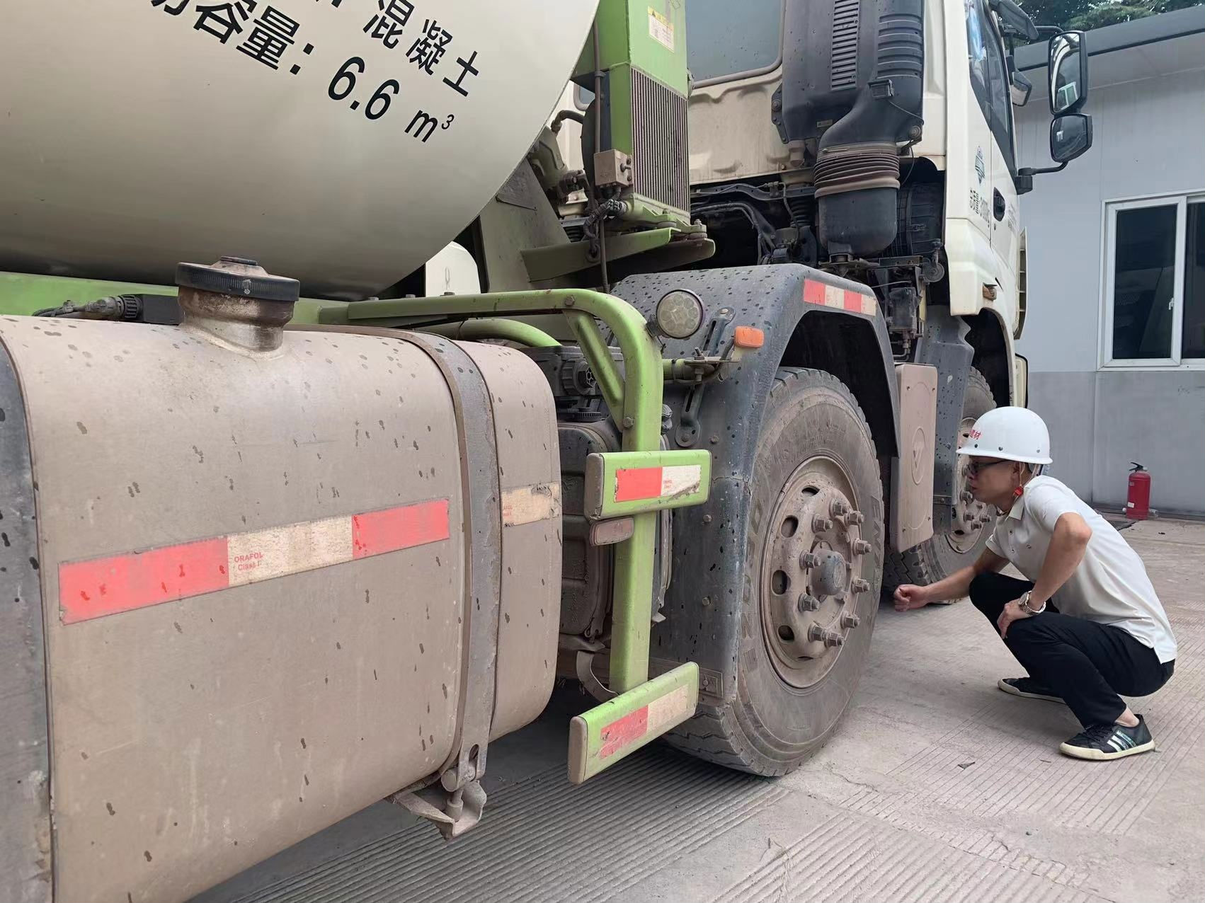 在國瑞商貿(mào)公司商砼站的停車場內(nèi), 總有一個身材清瘦、 架著一副眼鏡的人對即將開展運輸任務(wù)的罐車進行安全檢查, 并對司機開展駕駛前的安全教育, 他從擔任公司車隊長兼生產(chǎn)調(diào)度以來, 始終堅守著車輛出發(fā)前的檢查工作, 他就是國瑞黨支部委員王平。