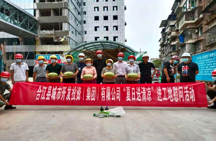 炎炎酷暑,天氣持續(xù)高溫,為切實做好戶外一線職工防暑降溫工作,2021年8月7日,合江縣城市開發(fā)投資(集團)有限公司開展“夏送清涼暖人心凝心聚力鼓干勁”活動,合江縣城市開發(fā)投資(集團)有限公司董事長兼總經(jīng)理鞠志良、副總經(jīng)理陳磊、工程部部長陳云峰等領(lǐng)導(dǎo)為高溫下堅守我司建筑崗位等戶外一線職工送去夏日清涼,送去公司的關(guān)懷。