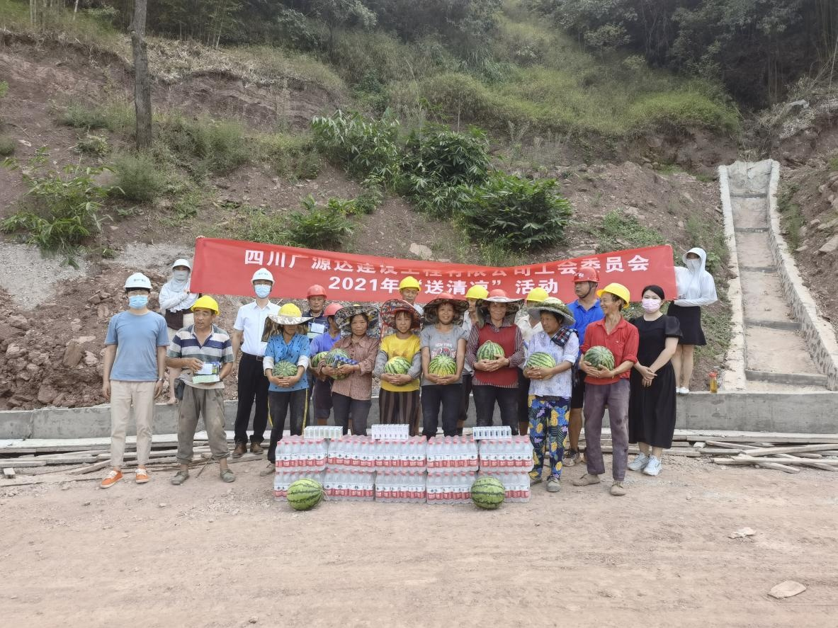 2021年入夏以來(lái),持續(xù)高溫,酷暑難耐。為了進(jìn)一步做好廣源達(dá)公司各在建項(xiàng)目防暑降溫工作、改善一線工人的生產(chǎn)、生活條件,切實(shí)保障項(xiàng)目管理人員和農(nóng)民工的生命安全和身體健康,確保他們安全度夏、清涼度夏。根據(jù)公司工作安排,公司工會(huì)委員會(huì)聯(lián)合質(zhì)安部精心制定了今夏的送清涼方案,今夏的慰問(wèn)品,從實(shí)用、方便攜帶等方面考慮,準(zhǔn)備了清涼降暑的水果、礦泉水和防暑藥品。于2021年8月6日會(huì)同各部門到施工現(xiàn)場(chǎng)看望和慰問(wèn)奮戰(zhàn)在一線的全體職工,開(kāi)展了2021年夏季送清涼活動(dòng),為一線職工送去組織的關(guān)心和問(wèn)候。