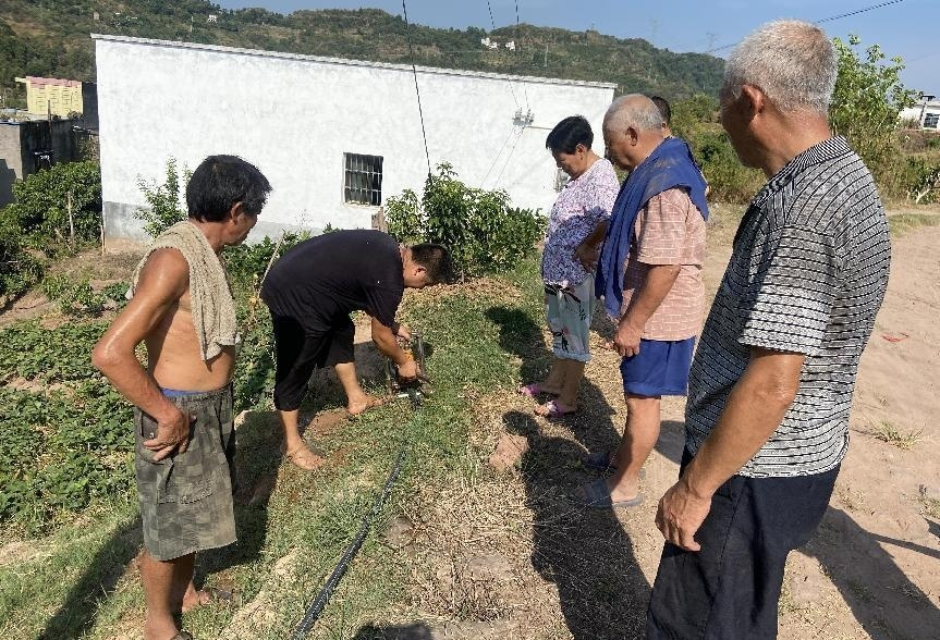 供水中心負責(zé)人劉世江、 一線員工共同檢查真龍鎮(zhèn)武民村供 水管線是否存在漏水情況,確保武民村供水正常