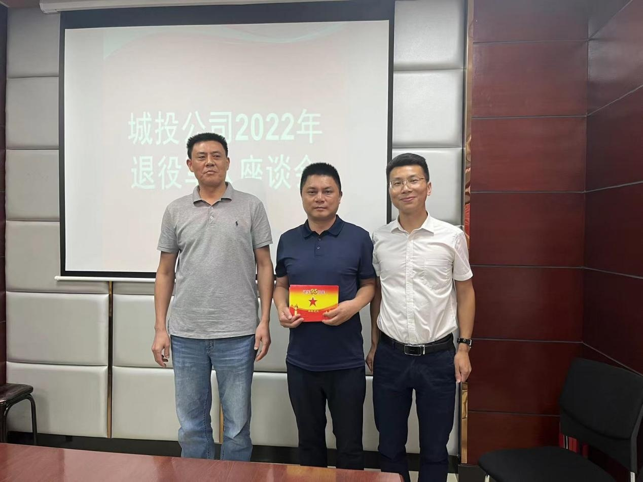 為慶祝中國(guó)人民解放軍建軍 95 周年, 2022 年 8 月 1 日 下午, 城投公司董事長(zhǎng)兼總經(jīng)理鞠志良、 副總經(jīng)理陳云峰組 織召開(kāi)退役軍人座談會(huì)。