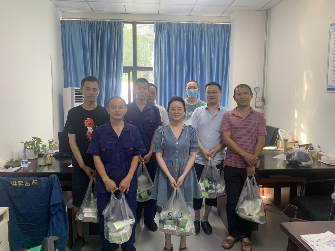 2022 年 7 月 8 日, 瀘州康力健醫(yī)療投資有限公司下屬公 司 四 川 洪 昇 醫(yī) 藥 有 限 公 司 組 織 開 展 “ 夏 日 送 清 涼 ” 活 動 , 工 會 主 席 周 容 帶 領 工 作 人 員 慰 問 奮 戰(zhàn) 在 高 溫 一 線 的 廣 大 干 部 職 工 , 為 他 們 送 去 了 藿 香 正 氣 液 、 風 油 精 、 十 滴 水 、 夏 桑菊等防暑降溫物資。